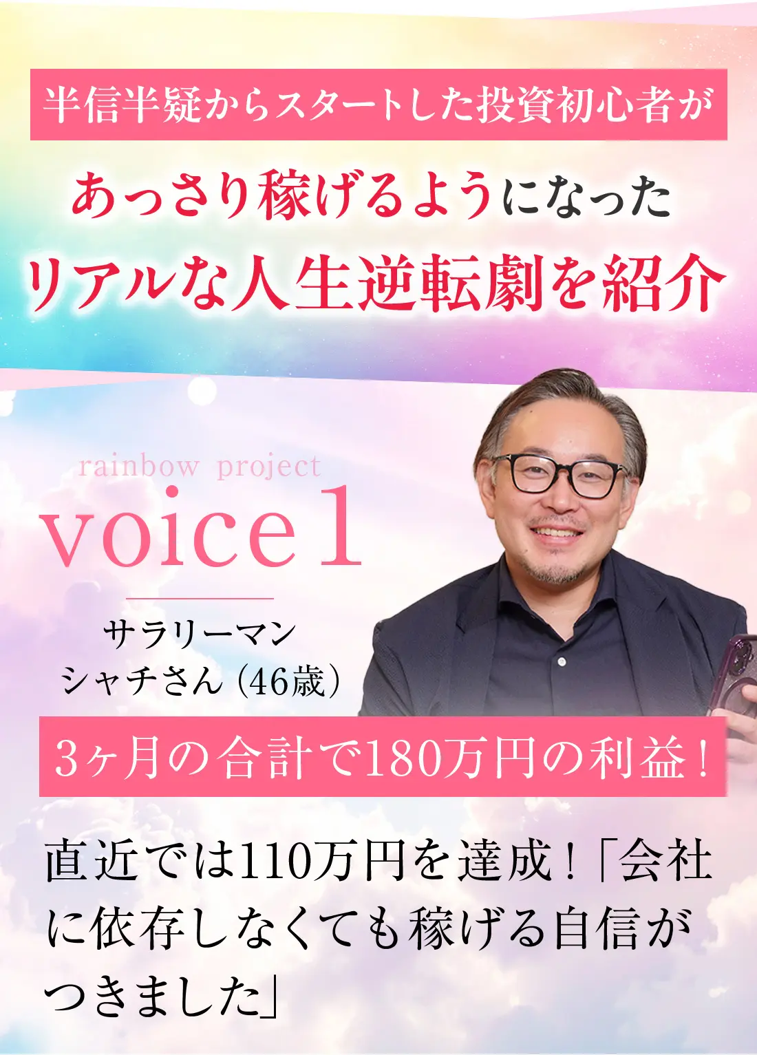 稼げるようになった方々の生の声を紹介しています。